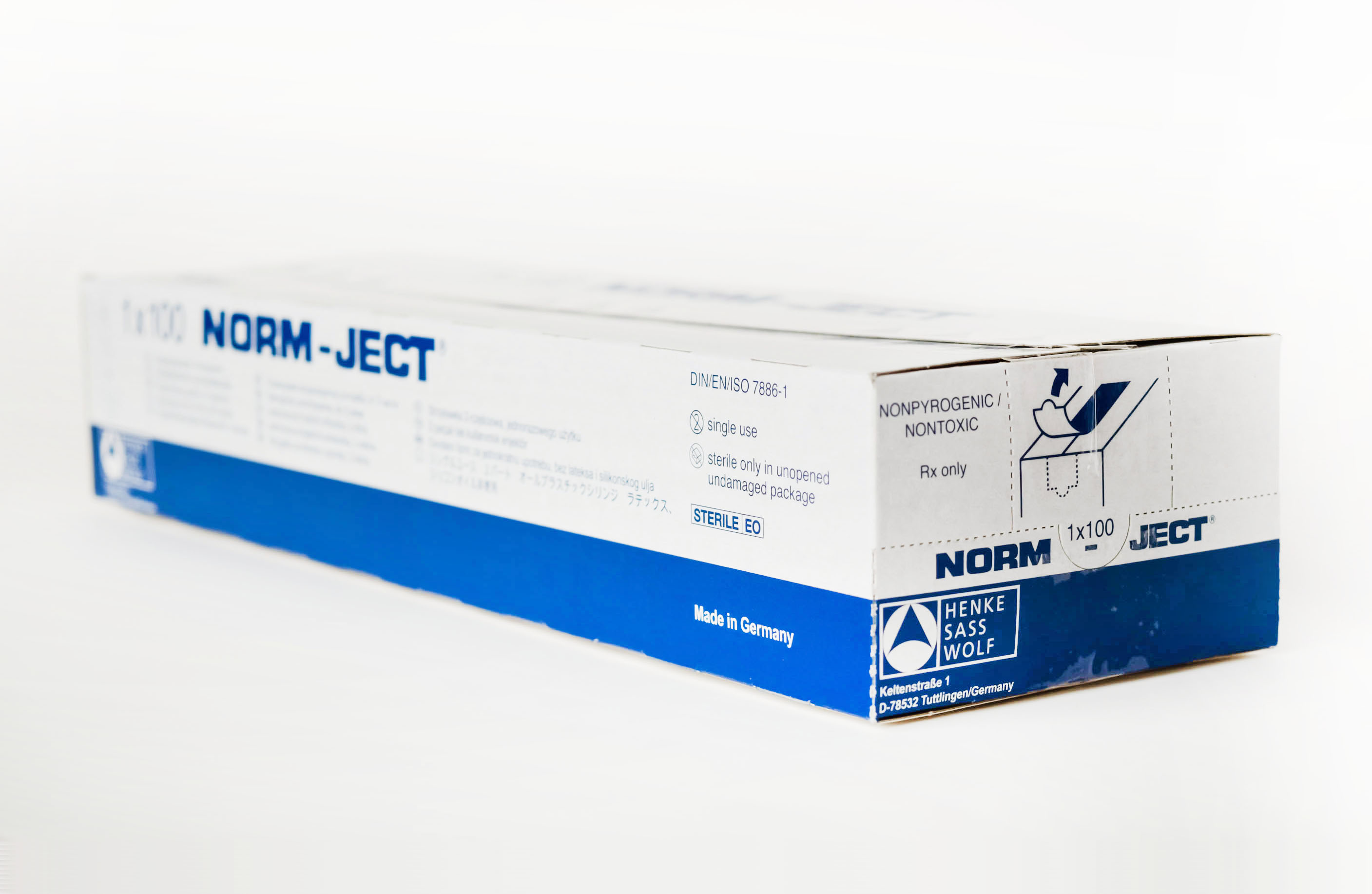 NORM-JECT ® syringes are latex free, contain no rubber, no silicone oil, styrene or DEHP and are DNA free. These syringes are the choice for any situation needing an inert, non-reactive syringe. Because of their composition they are indicated for Nuclear Medicine, Amniocentisis, IVF, embryo-transfer, chromatography and many laboratory procedures. They are more chemically resistant than rubber tipped syringes. Manufactured only from laboratory grade polypropylene and polyethylene. These unique plastic syringes have a positive safety stop to prevent accidental spills. NORM-JECT ® syringes are individually sterile strip packed. FDA registered, CE Mark, ISO9001 certified.