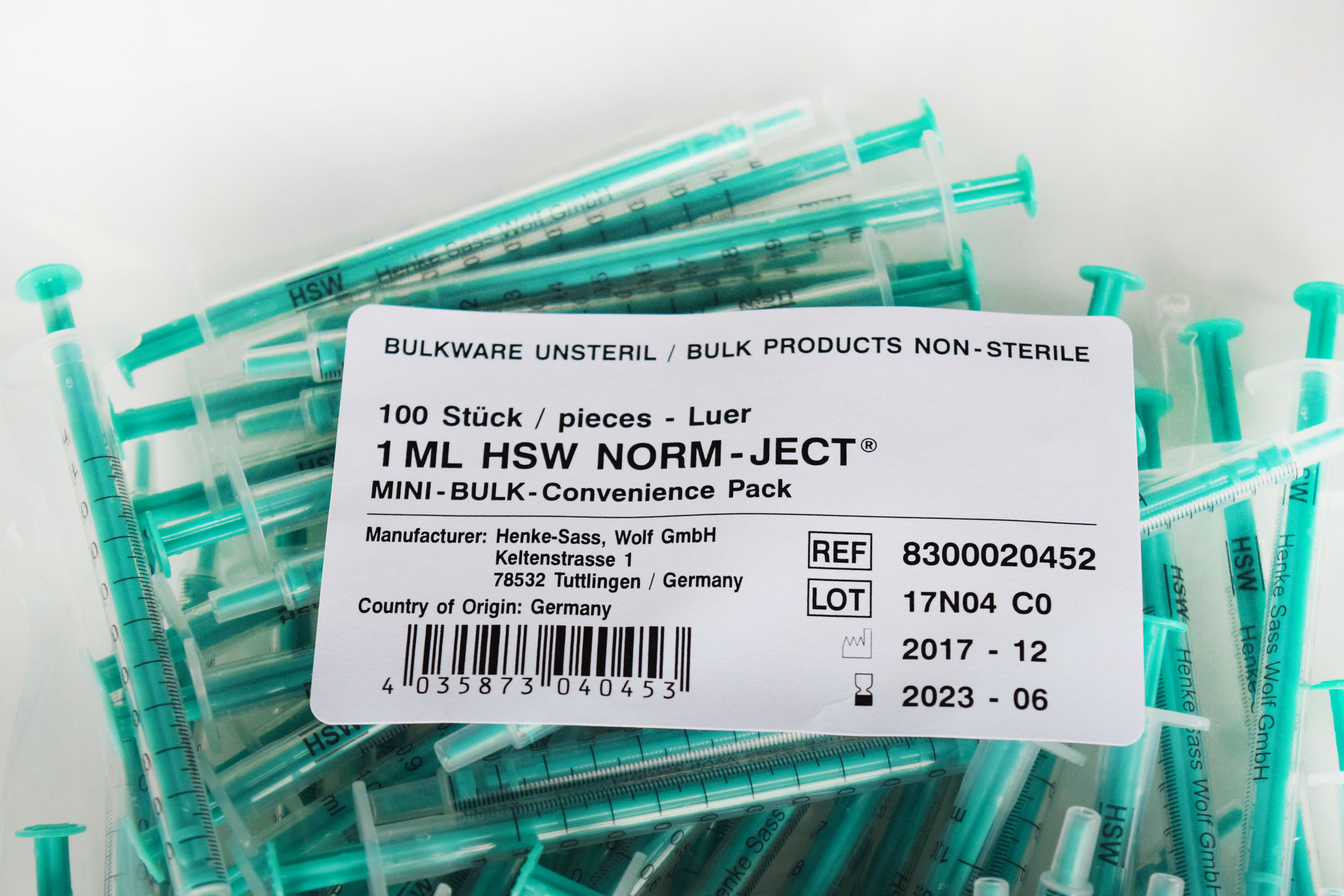 NORM-JECT ® syringes are latex free, contain no rubber, no silicone oil, styrene or DEHP and are DNA free. These syringes are the choice for any situation needing an inert, non-reactive syringe. Because of their composition they are indicated for Nuclear Medicine, Amniocentisis, IVF, embryo-transfer, chromatography and many laboratory procedures. They are more chemically resistant than rubber tipped syringes. Manufactured only from laboratory grade polypropylene and polyethylene. These unique plastic syringes have a positive safety stop to prevent accidental spills. These NORM-JECT ® syringes packaged BULK, NON-STERILE. ISO certified.