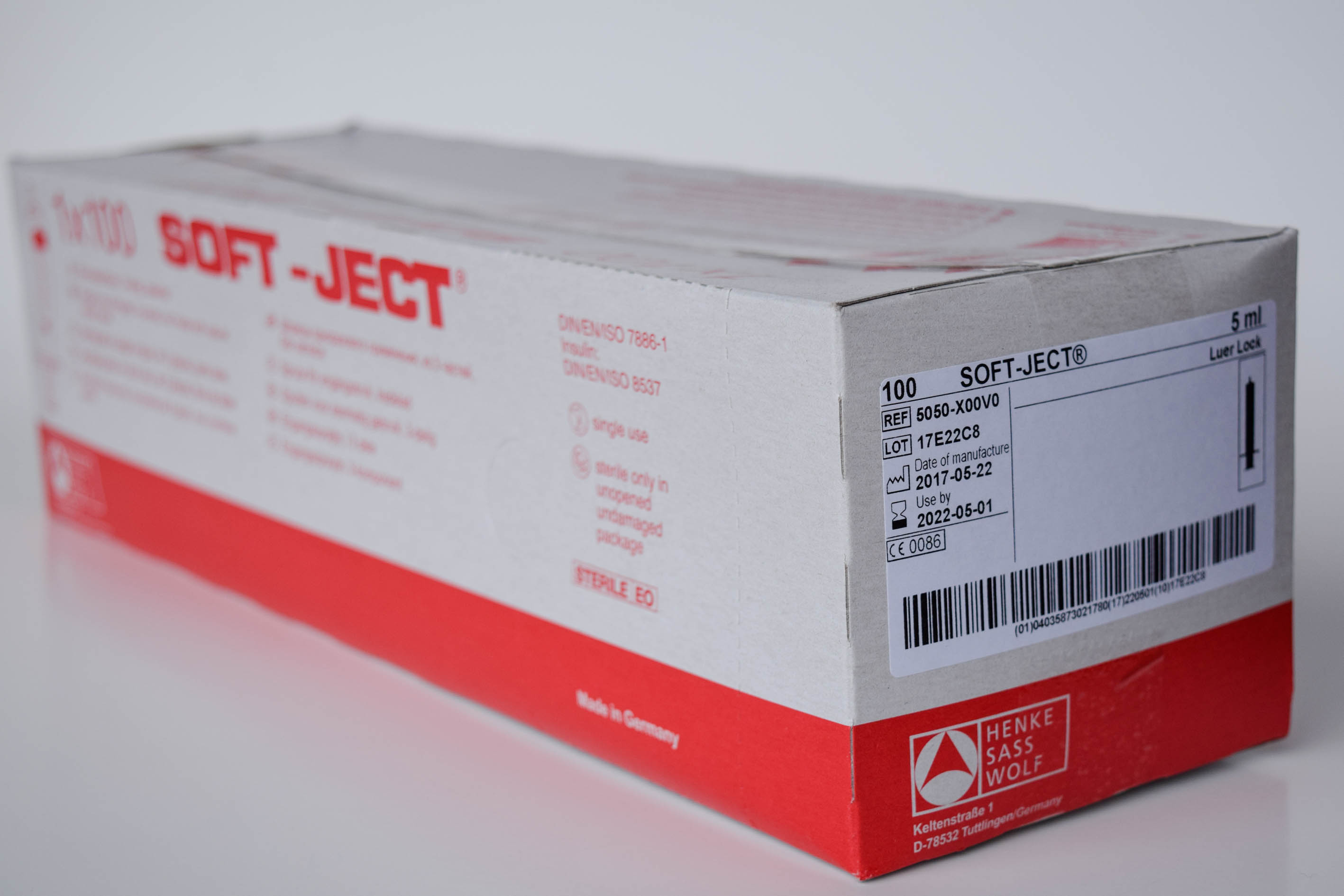 HSW Soft-Ject® syringes are a high quality disposable rubber piston syringe offering substantial savings. A lubricated synthetic rubber tipped piston allows for smooth draw while a positive stop prevents accidental pullout.  These syringes are ETO gas sterilized and are latex and pyrogen free. All Soft-Ject® syringes are packaged in individual sterile strip packs. FDA registered CE Mark, ISO 9001 certified.