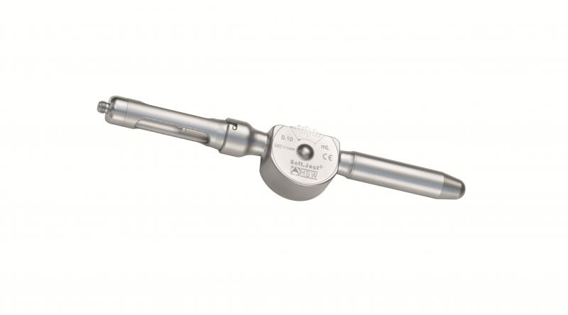 Anesthetic dosing wheel used for intraligmental and subcutaneous injections. Pressure and time control ‹0.01ml/second minimum flow. Autoclavable up to 200° C (392° F). ADA accepted, CE Mark, ISO 9001 certified.